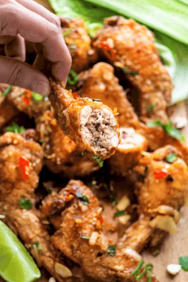 Món cánh gà giòn nhồi nhân thịt đậm đà hoà quyện với nước sốt cay cay ngọt ngọt. Đây chắc chắn là một sự kết hợp cực kì thú vị, khiến mâm cơm thêm phần hấp dẫn.