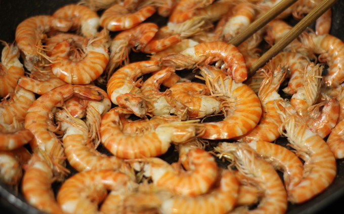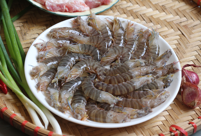 Tôm cắt bỏ râu, rút chỉ đen ở lưng rồi rửa sạch, để ráo nước.
